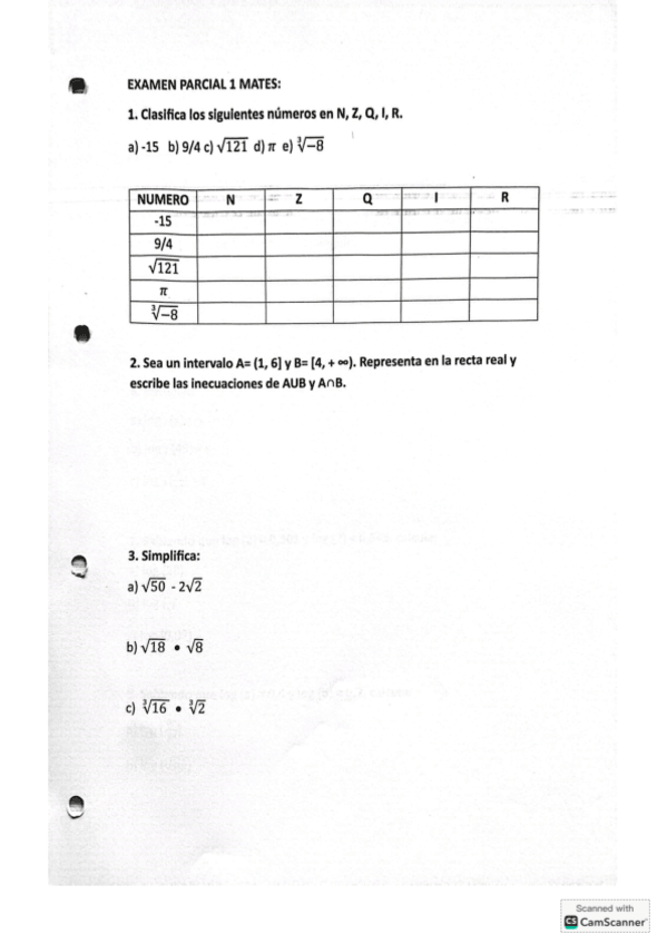 Ejercicios de repaso para antes del examen, números reales, logaritmos, y raíces