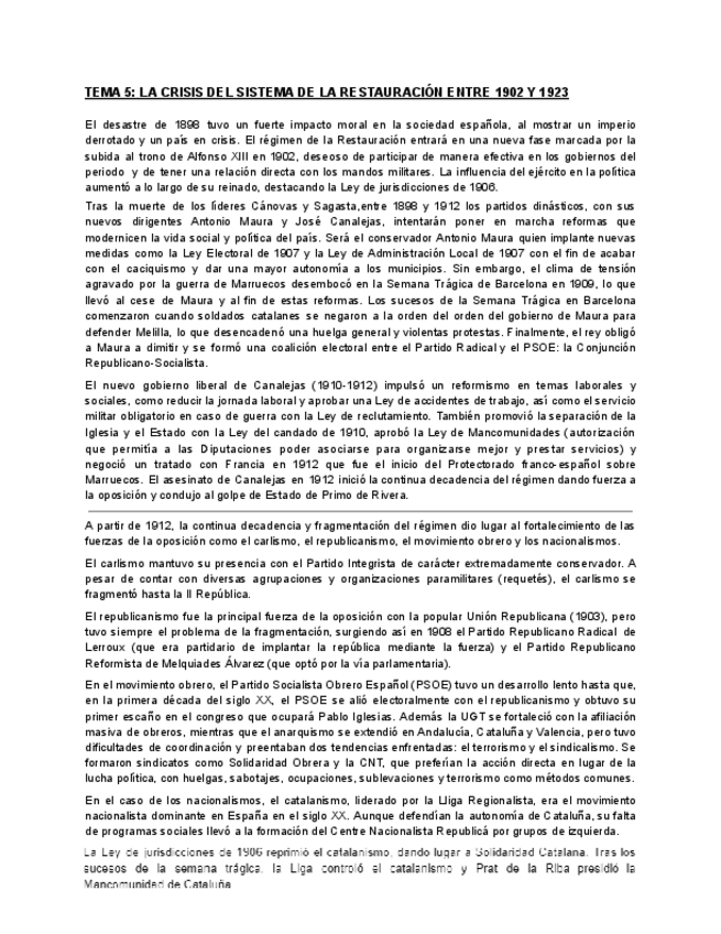 He publicado nuevos apuntes de 2º Historia de España: Siglo XX