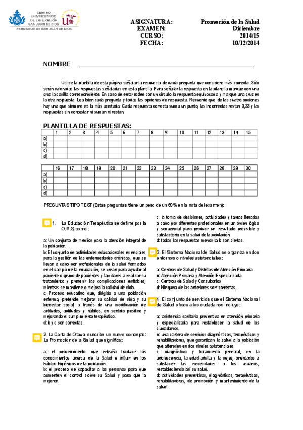 He publicado nuevos examenes de 1º Promoción de la Salud: Exámenes Promoción de la Salud
