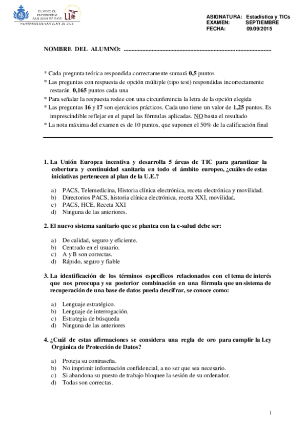 He publicado nuevos examenes de 1º Estadística y Tecnología de la Información y Comunicación: Exámenes EstadísticaTIC