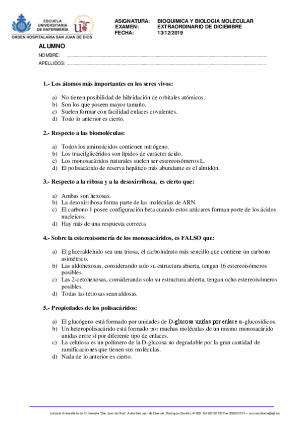 He publicado nuevos examenes de 1º Bioquímica y Biología Molecular: EXÁMENES BIOQUÍMICA