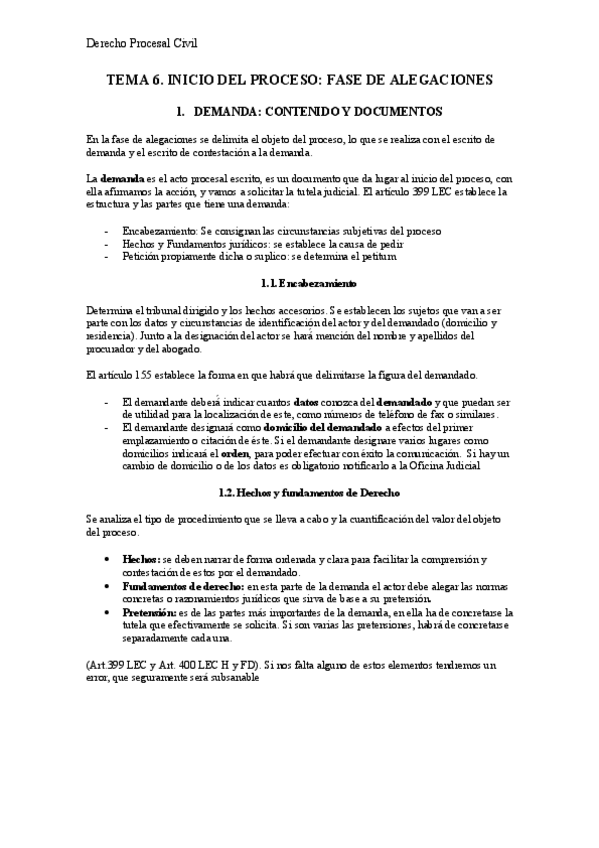 Apuntes muy completos de la asignatura Derecho Procesal Civil completados del Manual Recomendado