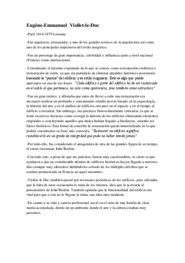 He publicado nuevos apuntes de 4º Teoría de la Conservación y Restauración: Viollet-le-Duc.pdf
