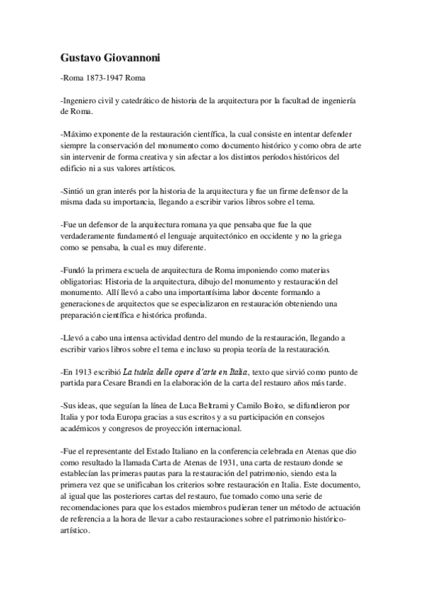 He publicado nuevos apuntes de 4º Teoría de la Conservación y Restauración: Gustavo-Giovannoni.pdf