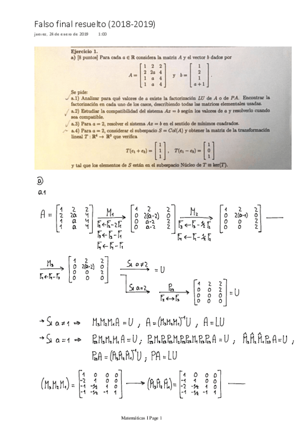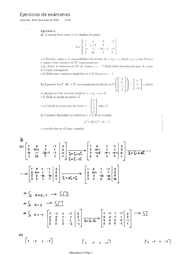 He publicado nuevos examenes de 1º Matemáticas I: Matemáticas I