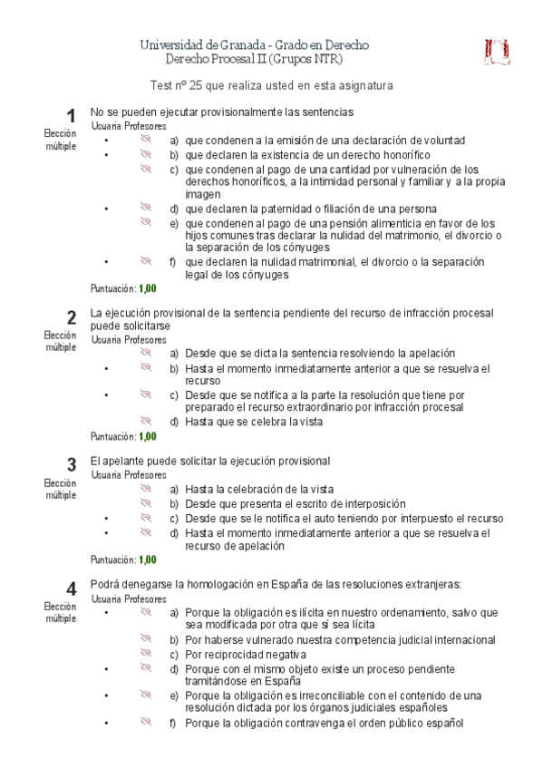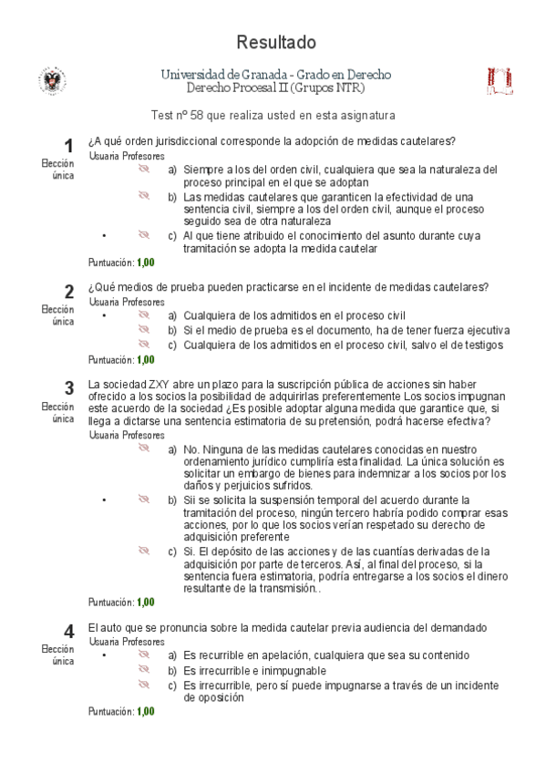 He publicado nuevos test de 3º Derecho Procesal II: Autotest 2022 2023