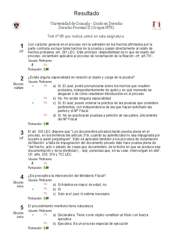 He publicado nuevos test de 3º Derecho Procesal II: Test específicos 2022 2023