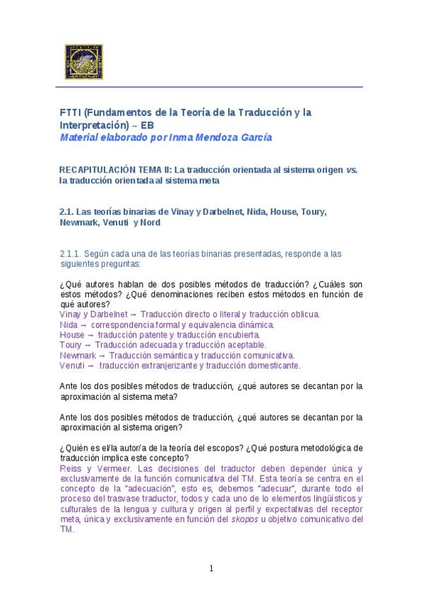 He publicado nuevos apuntes de 1º Fundamentos de la teoría de la traducción y la interpretación: Recapitulaciones EB