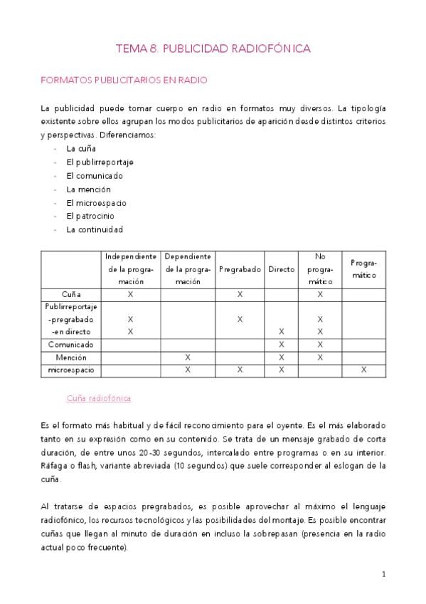 He publicado nuevos apuntes de 4º Apuntes Variados: T8. Publicidad radiofónica.pdf