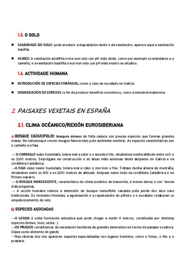 Tipos de vexetación e as súas respectivas alteraciones causadas polo home. Contido de Xeografía de 2ºBACH de Galicia