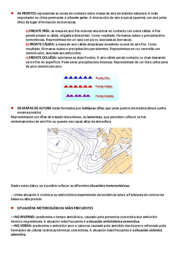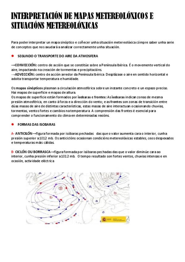 Mapas sinópticos:interpretación e situacións metereolóxicas de especial importancia para segundo de bacharelato. Apuntes en galego.