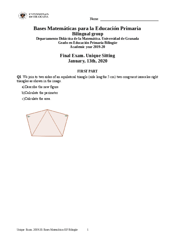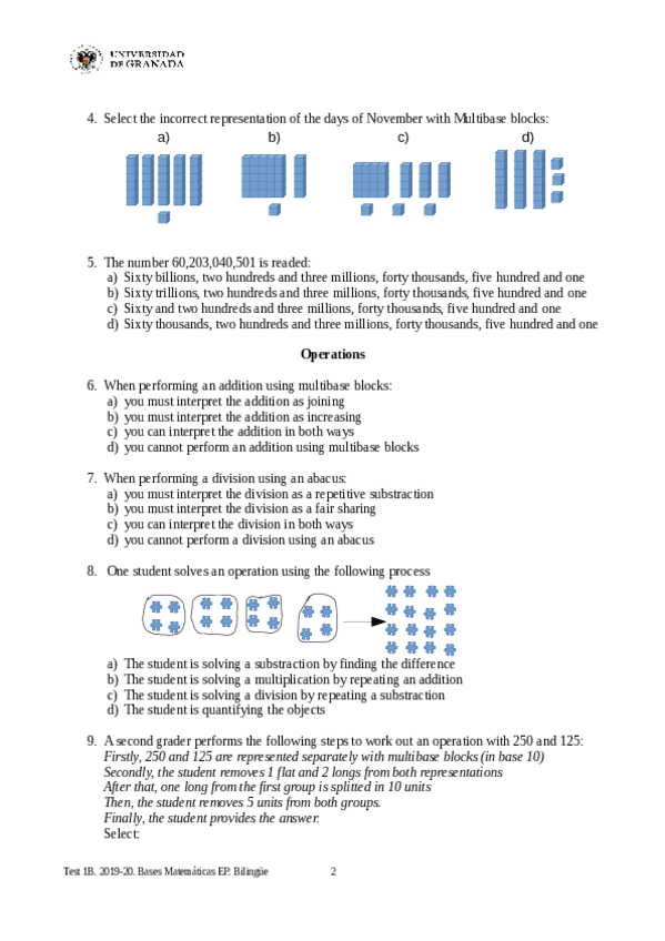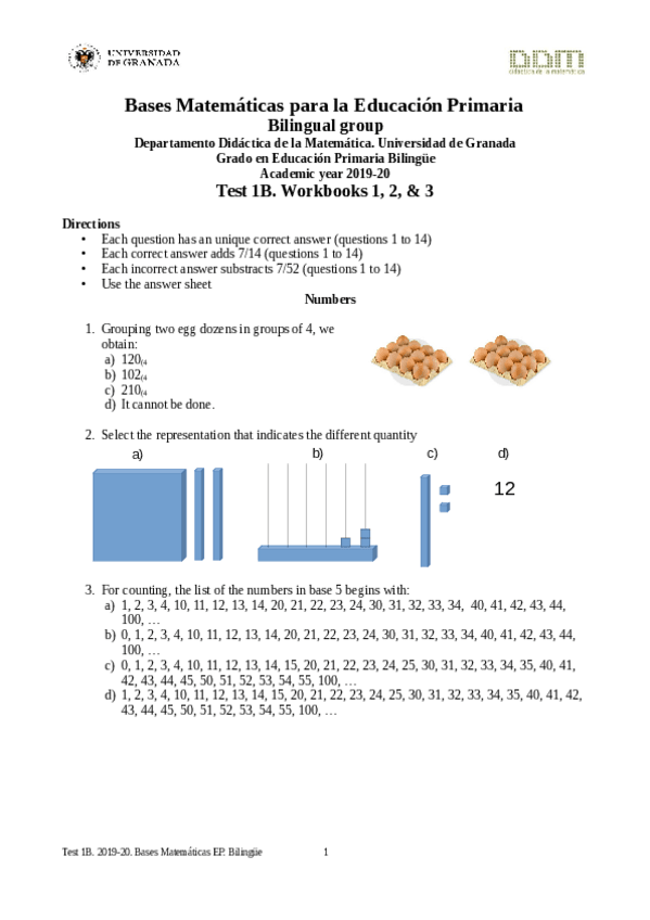 He publicado nuevos examenes de 1º Bases Matemáticas Para la Educación Primaria: FinalTestUnique.pdf