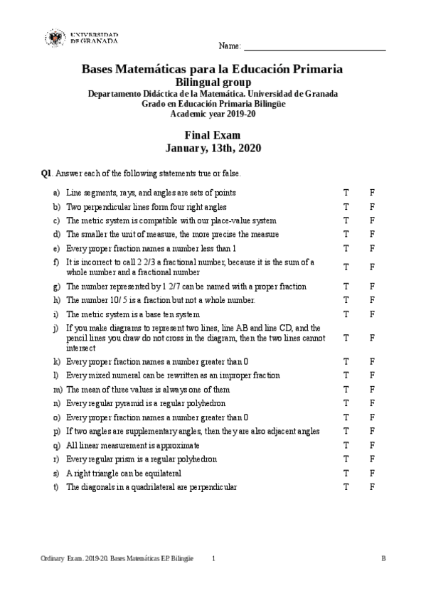 He publicado nuevos examenes de 1º Bases Matemáticas Para la Educación Primaria: FinalTestJanuaryTypeB-.pdf