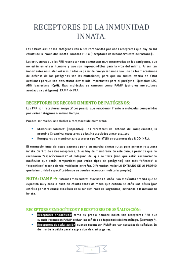 He publicado nuevos apuntes de 3º Inmunología: Receptores de reconocimiento de patrones. Apuntes Limpios.pdf