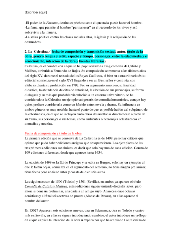 He publicado nuevos apuntes de 2º Literatura Española Medieval y Renacentista: Tema 4 La celestina.docx