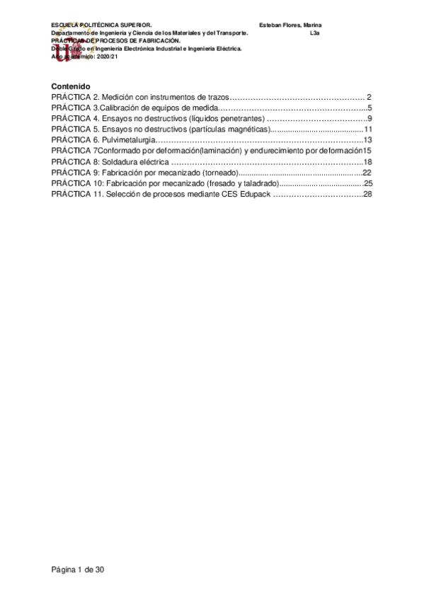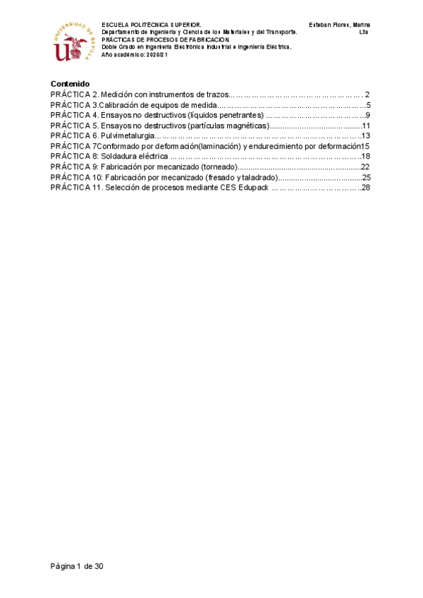 He publicado nuevos practicas de 3º Procesos de Fabricación: Informe de practicas