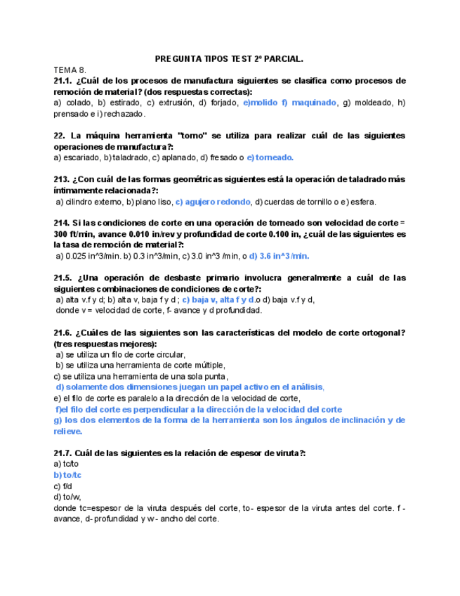 He publicado nuevos apuntes de 3º Procesos de Fabricación: Test y problemas 2º Parcial