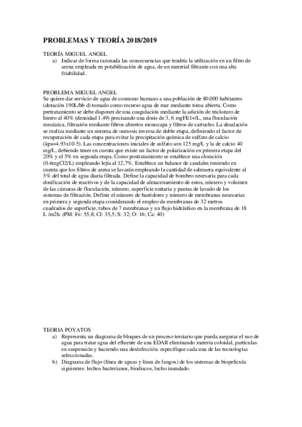 He publicado nuevos examenes de 3º Tratamiento y Tecnología de Aguas: EXAMEN-ENERO-2019-2020.pdf