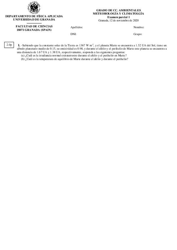 He publicado nuevos examenes de 2º Meteorología y Climatología: Examen Primer parcial