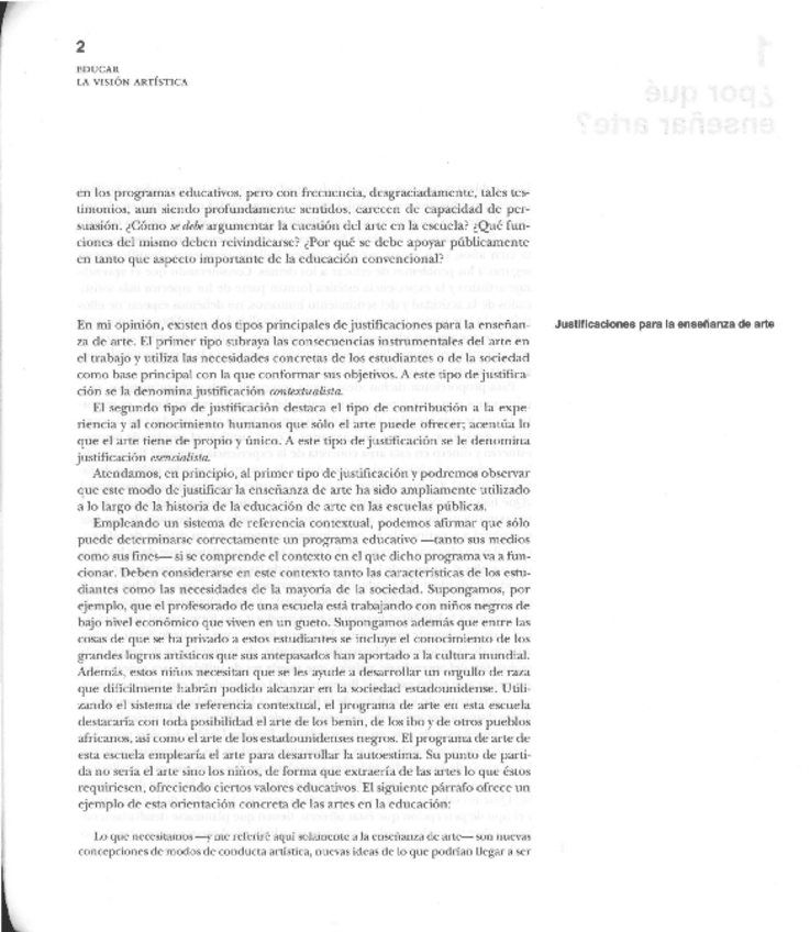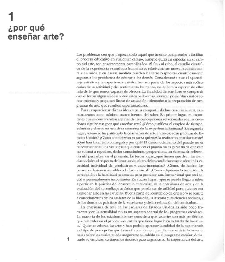He publicado nuevos apuntes de 1º enseñanza y Aprendizaje de las Artes Visuales y Plásticas: EISNER 1995 - Por qué enseñar arte- en Educar la Visión Artística.pdf