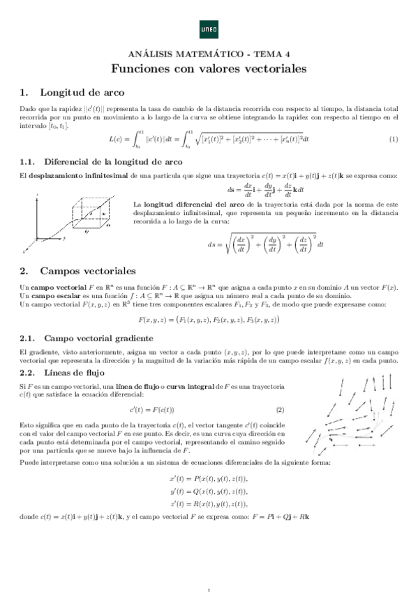 Mis apuntes sobre "Funciones con valores vectoriales" en Análisis Matemático 2 de la UNED. Basados en el libro Cálculo Vectorial de Marsden y Tromba.