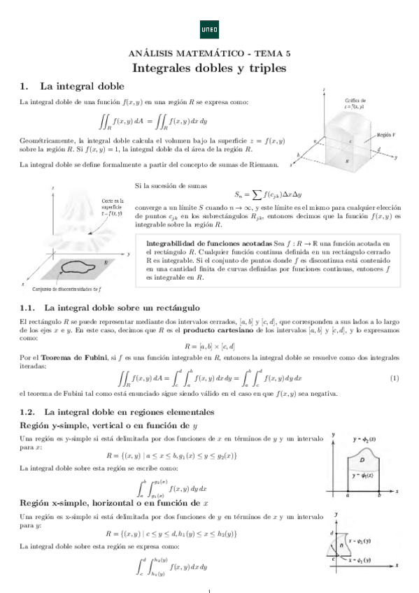 Mis apuntes sobre "Integrales dobles y triples" en Análisis Matemático 2 de la UNED. Basados en el libro Cálculo Vectorial de Marsden y Tromba.
