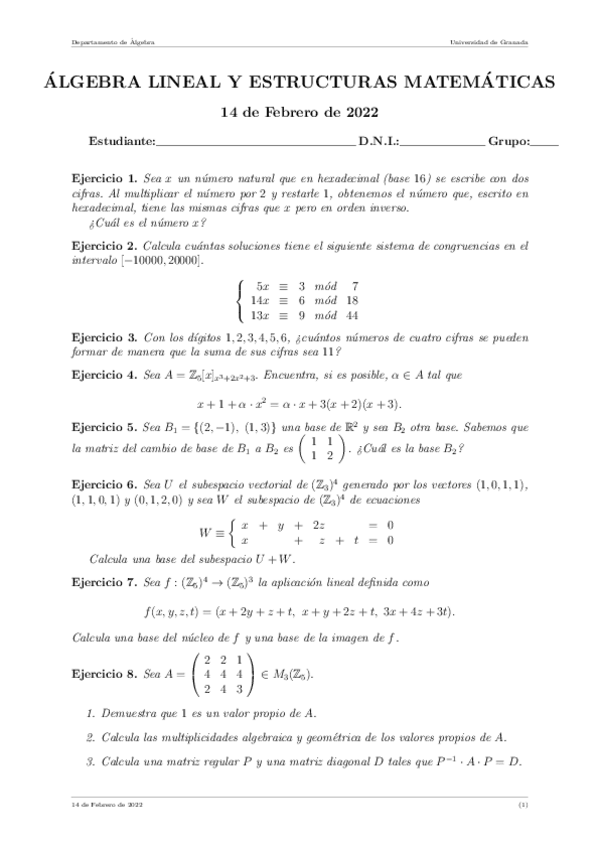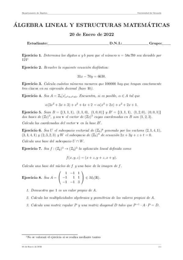 He publicado nuevos apuntes de 1º Álgebra Lineal y Estructuras Matemáticas: EXAMENES ALEM