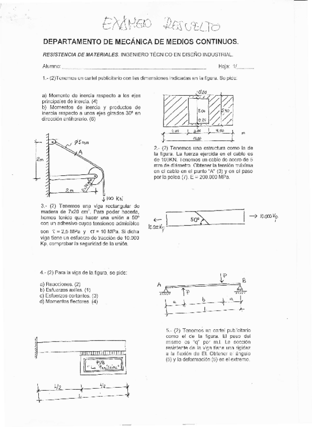 He publicado nuevos examenes de 2º Resistencia de Materiales y Estructura del Producto: Exámenes Resueltos