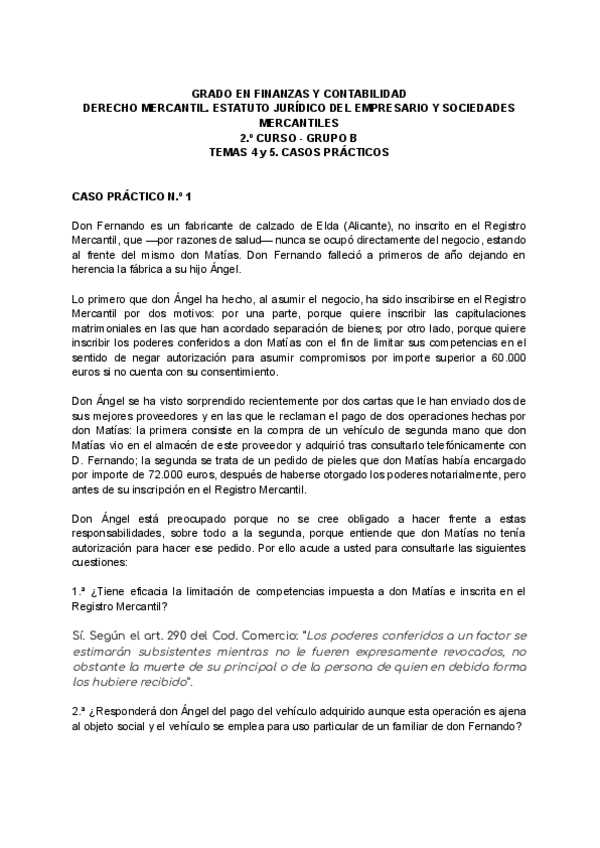 He publicado nuevos practicas de 2º Derecho Mercantil: Estatuto Jurídico del Empresario y Sociedades Mercantiles: Derecho mercantil