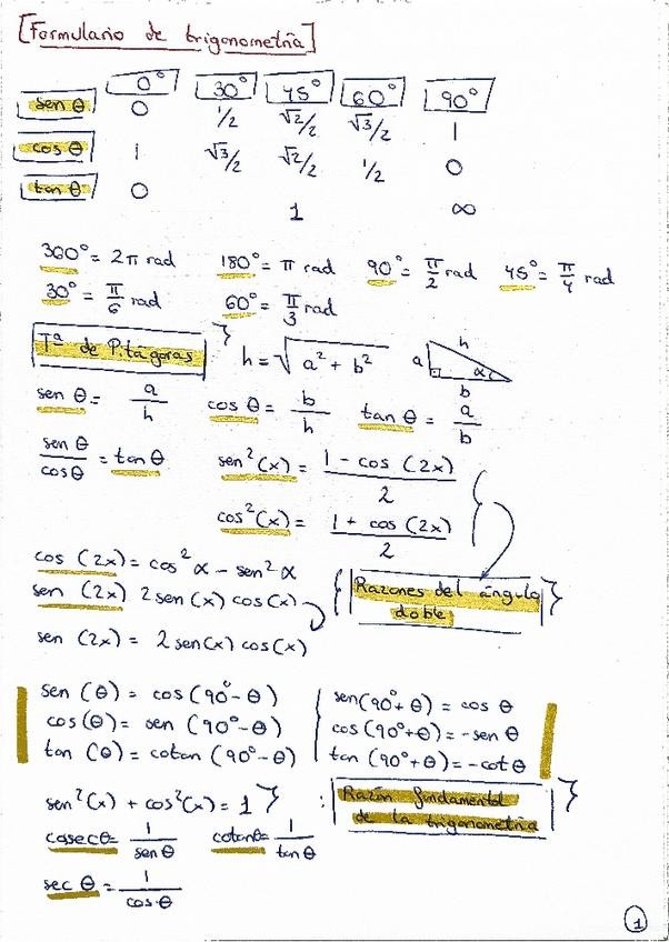 Formulario necesario para cambios trigonométricos en integrales, etc.