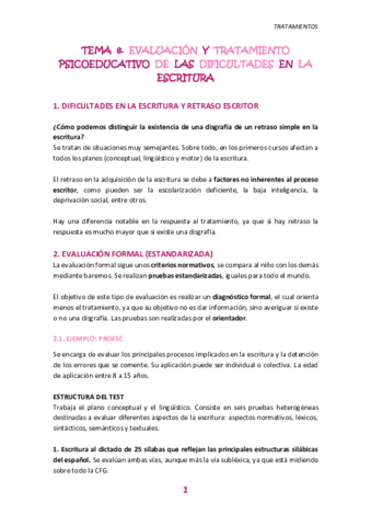 He publicado nuevos apuntes de 4º Tratamientos Psicoeducativos de Los Trastornos de la Lengua Escrita y El Cálculo: Todos los temas para el examen