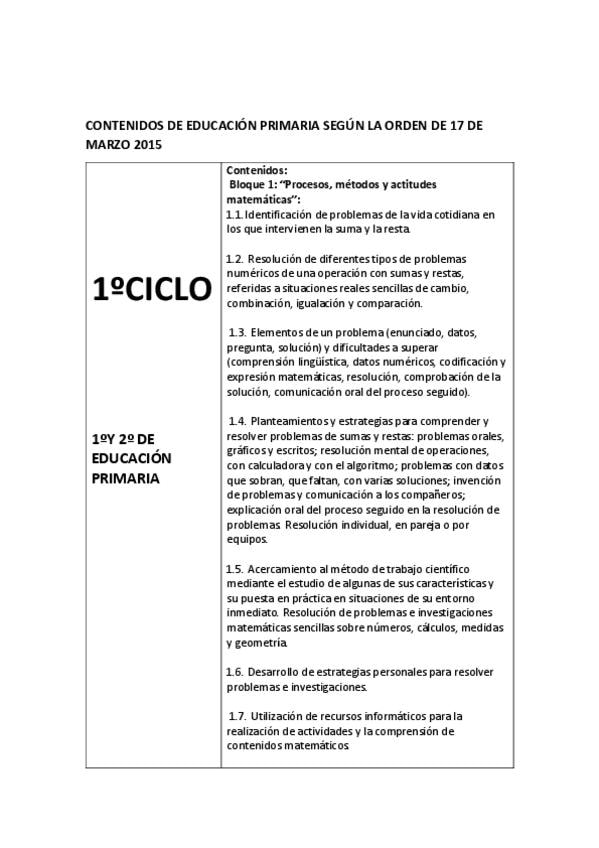 He publicado nuevos apuntes de 2º Didáctica de las Matemáticas I: CONTENIDOS DE EDUCACIÓN PRIMARIA SEGÚN LA ORDEN DE 17 DE MARZO 2015.pdf