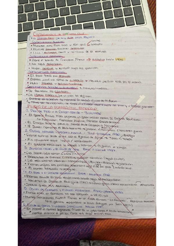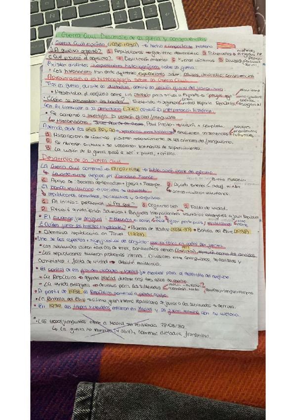 Resumen del bloque 10 de Historia de España. Lo tachado son las fases de la Guerra