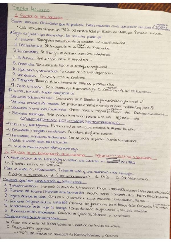 Resumen de todo el tema del sector terciario. Completo para examen y para PAU. Si os sirve, a mí me preguntaron a desarrollar sobre el turismo