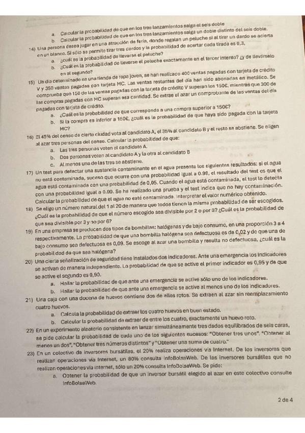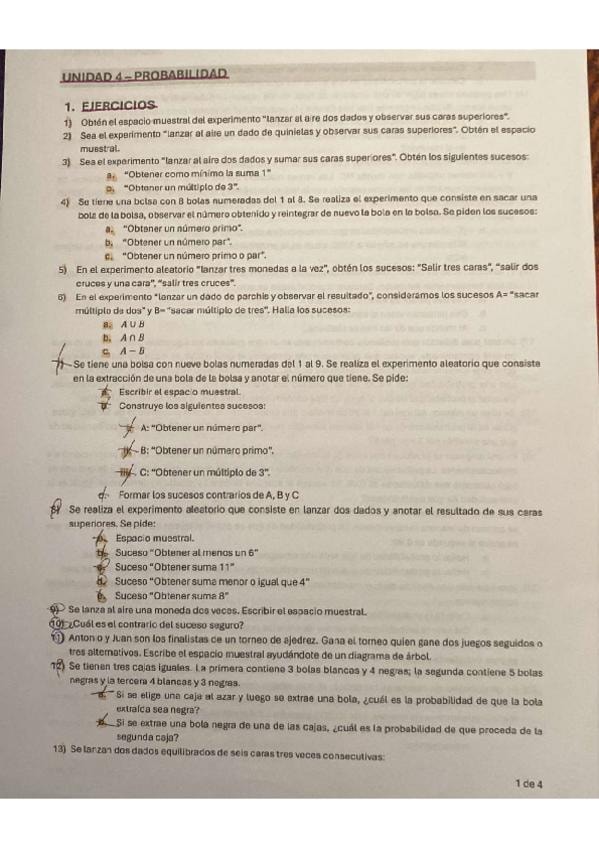 Problemas y ejercicios para repasar tema de probabilidad. Genial para exámenes y preparar PAU