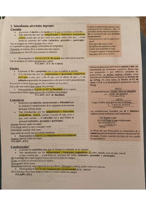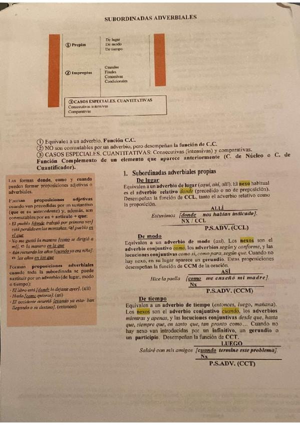 Resumen esquematizado y visual con todo lo importante de las subordinadas adverbiales.