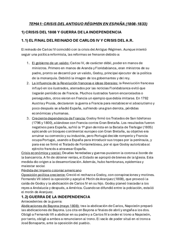 TEMA1: CRISIS DEL ANTIGUO RÉGIMEN EN ESPAÑA (1808-1833) -Epígrafe 1: CRISIS DEL 1808 Y GUERRA DE LA INDEPENDENCIA. -Epígrafe 2: LA REVOLUCIÓN LIBERAL, LAS CORTES DE CÁDIZ Y LA CONSTITUCIÓN DE 1812. -Epígrafe 3: EL REINADO DE FERNANDO VII: SUS ETAPAS (18