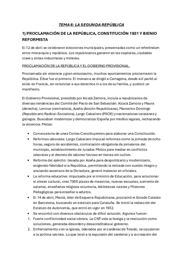 TEMA 6: LA SEGUNDA REPÚBLICA 1) PROCLAMACIÓN DE LA REPÚBLICA, CONSTITUCIÓN 1931 Y BIENIO REFORMISTA 2) BIENIO RADICAL CEDISTA Y EL TRIUNFO DEL FRENTE POPULAR