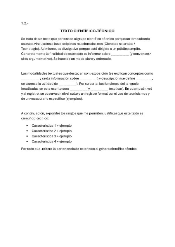 Estructura para realizar el comentario de texto (periodístico, científico-técnico y humanístico), junto con los rasgos que hay que destacar.