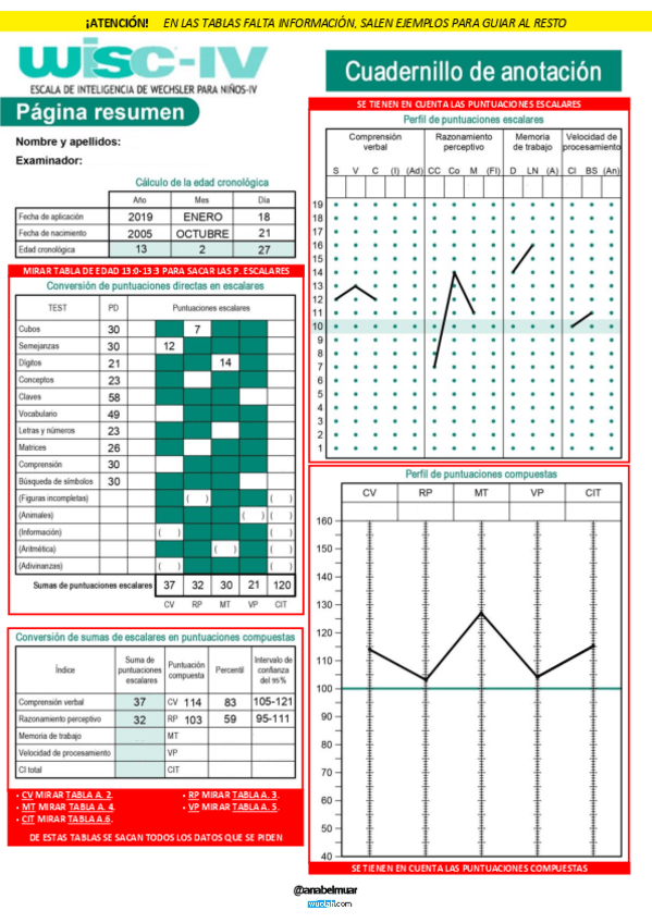 He publicado nuevos apuntes de 2º Tecnicas de Evaluacion Psicologica: PRÁCTICA WISC-IV - TEP