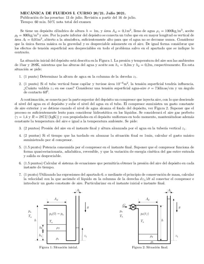 He publicado nuevos examenes de 3º Mecánica de Fluidos I: problemaMFI-Julio21solucion.pdf