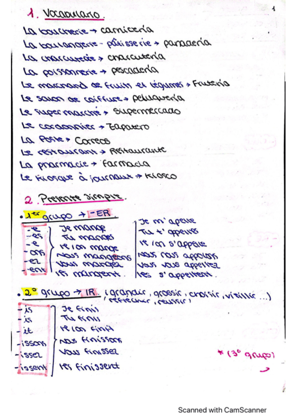 Gramática completa del contenido de Francés II en Andalucía, incluyendo tiempos verbales, voz pasiva, pronombres CD y CI y ejemplos