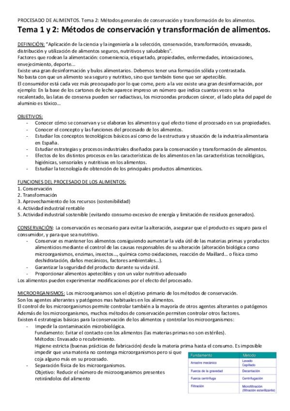 Apuntes Procesado de los alimentos 2021