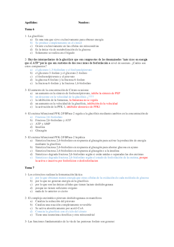 He publicado nuevos apuntes de 2º Bioquímica Metabólica: Cuestionarios de Clase