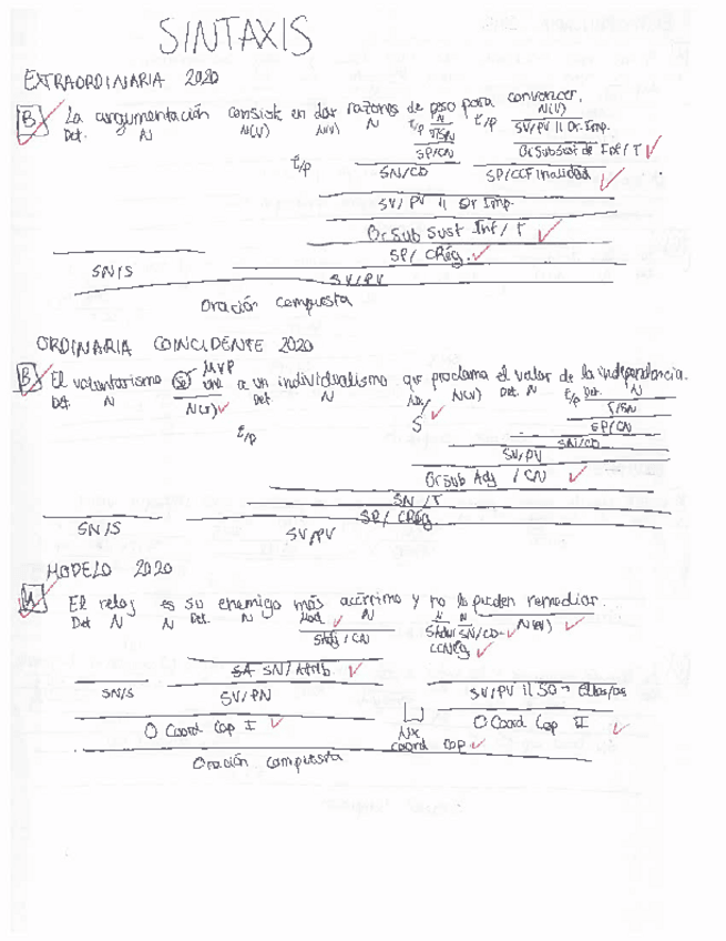 Todas las frases de sintaxis de EvAU resueltas desde 2014 hasta 2020