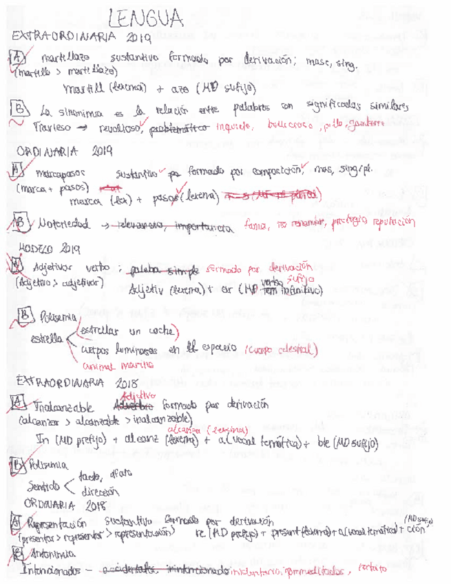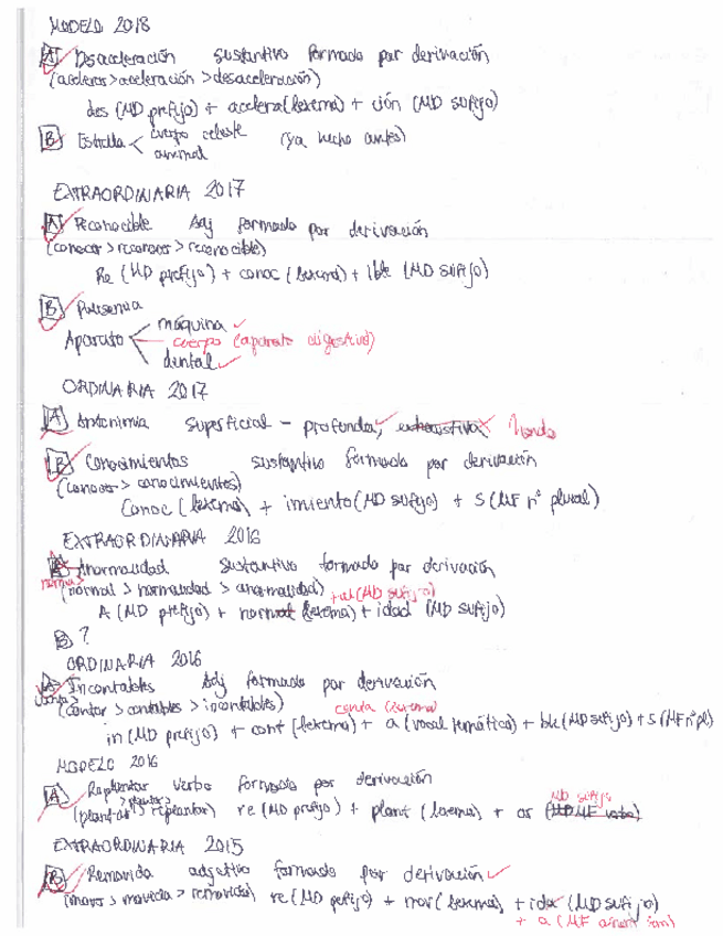 Ejercicios de morfología de EvAU resueltos desde el 2009 hasta el 2019