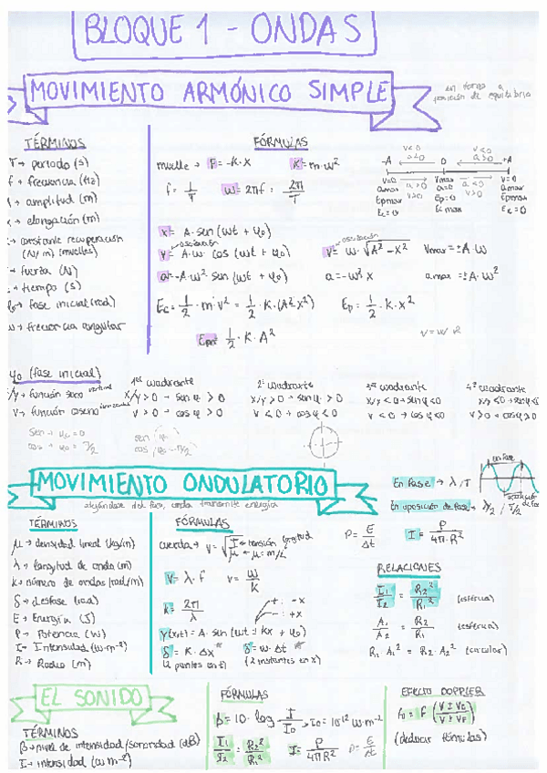 Apuntes de física divididos por bloques y temas de la EvAU. Con colores, resaltando lo más importante y con ejemplos entre medias