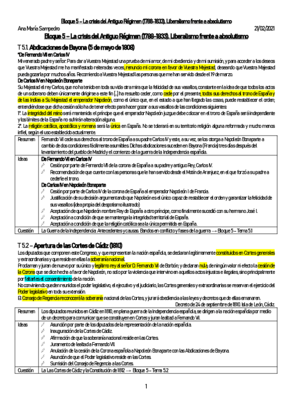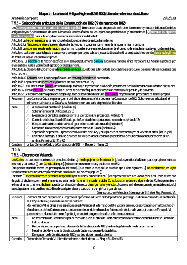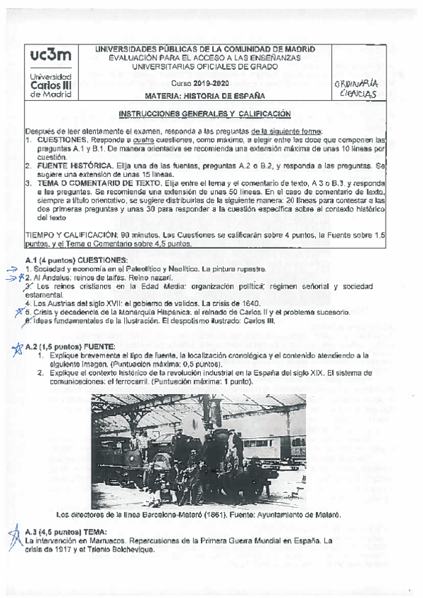 Ejemplo de resolución de los exámenes de EvAU de Historia de España 2020 y Modelo 2021