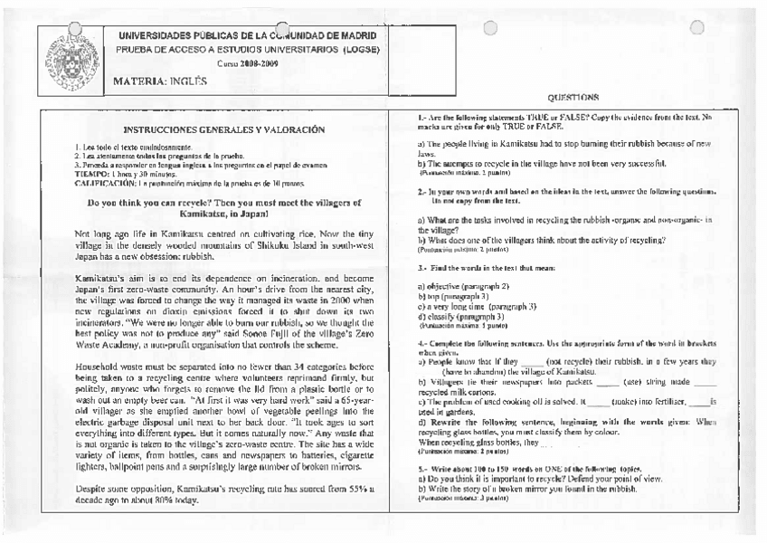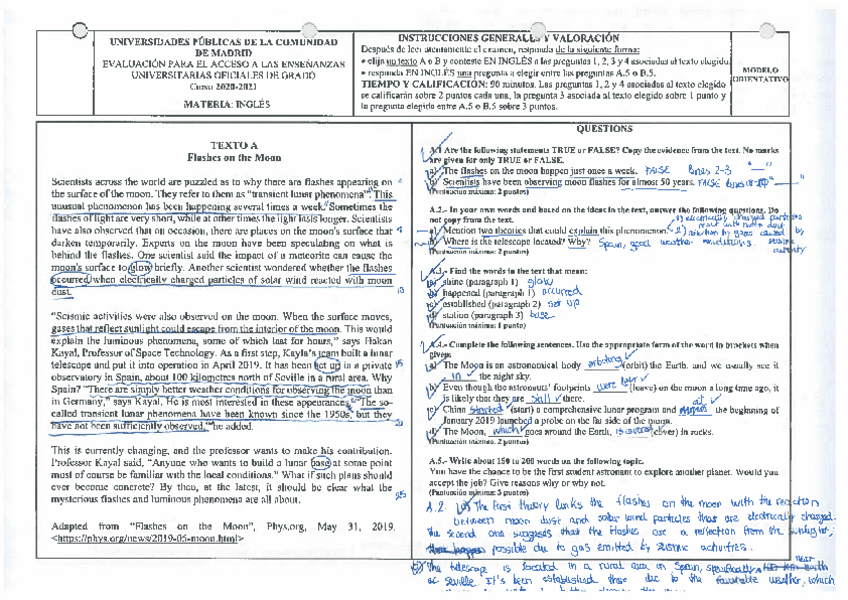 Algunos exámenes de EvAU resueltos junto con algún writing corregido