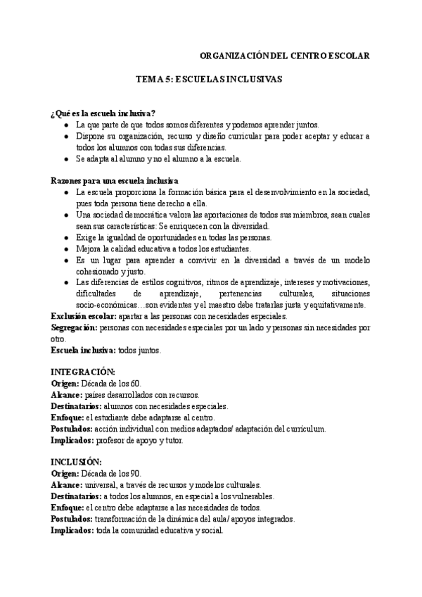 He publicado nuevos apuntes de 2º Organización del Centro Escolar: T5-escuela-inclusiva.pdf